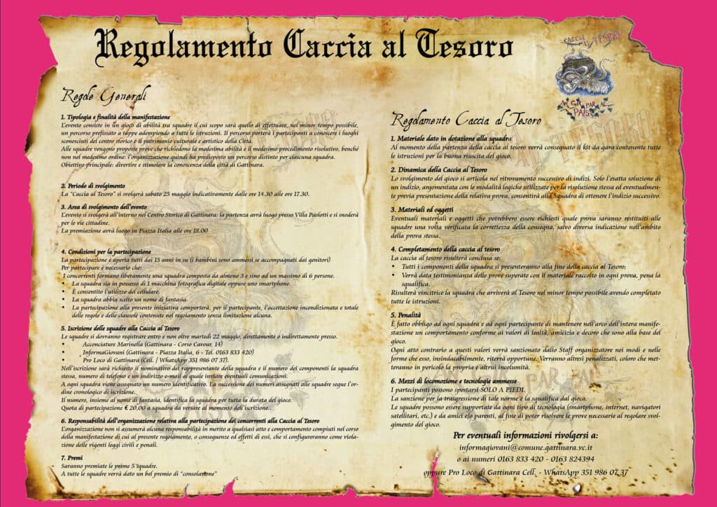 Al momento della partenza della caccia al tesoro verrà consegnato il kit da gara contenente tutte le istruzioni per la buona riuscita del gioco.