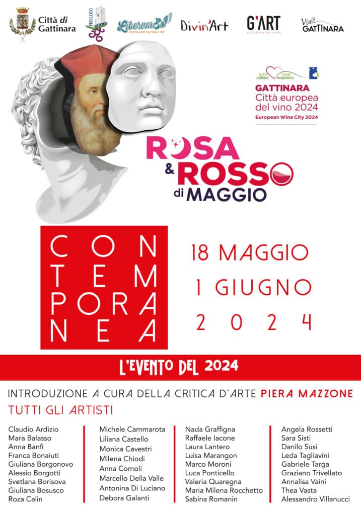IL Filo Conduttore principale è il vino, infatti la mostra è inserita nell’ambito di “ROSA E ROSSO DI MAGGIO” e delle iniziative di Gattinara Città Europea del Vino 2024.