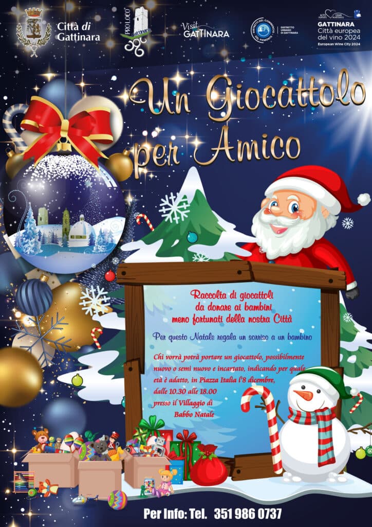Anche quest’anno, Gattinara si prepara a vivere un Natale all’insegna della solidarietà e della condivisione con il ritorno dell’iniziativa “Un Giocattolo per Amico”, parte del tradizionale evento “Natale a Gattinara”. Questo appuntamento, ormai diventato un pilastro della comunità, ha l’obiettivo di regalare un momento di gioia ai bambini meno fortunati, rendendo il Natale una festa davvero per tutti.